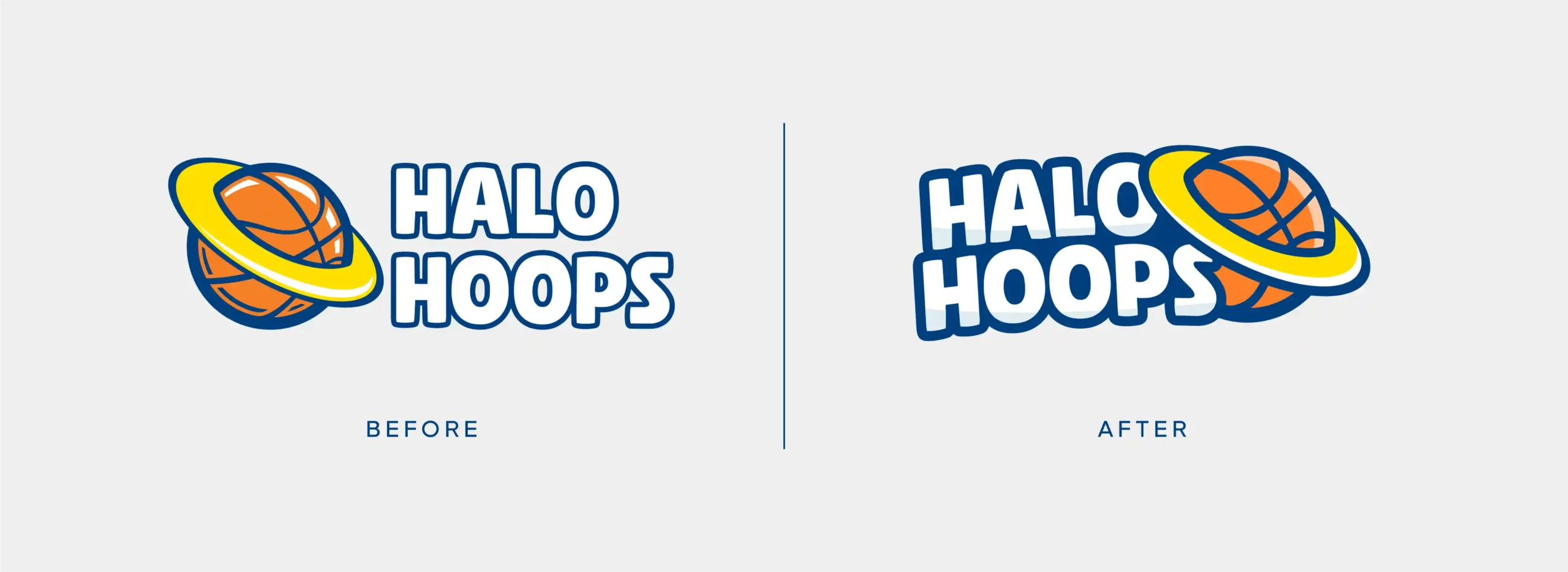 Halo Hoops has been operating for over 25 years, impacting the community in a positive way and building valuable brand-equity along the way. Keeping the aspects that locals had grown familiar with was crucial in updating this identity.
